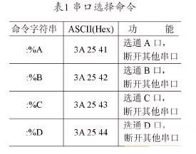 AT89C2051始終監(jiān)視HOST終端發(fā)出的信息,一旦收到HOST終端發(fā)出的串口選擇命令,如表1所示,立即對P3.4和P3.5引腳進(jìn)行設(shè)置來控制 CD4052模擬開關(guān)選通對應(yīng)通道并控制相應(yīng)的LED燈以作指示。串口選擇后, HOST終端需要根據(jù)AT89C2051指令執(zhí)行和模擬開關(guān)切換時間延遲一定時間后再開始向?qū)?yīng)用戶設(shè)備發(fā)送數(shù)據(jù)/命令。HOST端數(shù)據(jù)發(fā)送結(jié)束則由接收端的用戶設(shè)備向AT89C2051發(fā)送中斷結(jié)束信號,其結(jié)束處理與數(shù)據(jù)由用戶設(shè)備發(fā)送到HOST端的結(jié)束處理相同。如果同時有用戶設(shè)備向 AT89C2051請求發(fā)送數(shù)據(jù)到HOST端,則優(yōu)先響應(yīng)HOST端的發(fā)送數(shù)據(jù)/命令請求,即HOST端的發(fā)送數(shù)據(jù)/命令請求的優(yōu)先級最高。