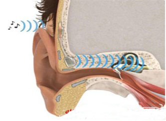 圖 通過將骨傳導(dǎo)助聽器植入中耳的位置,聽力障礙的病人可以恢復(fù)正常的聽力。