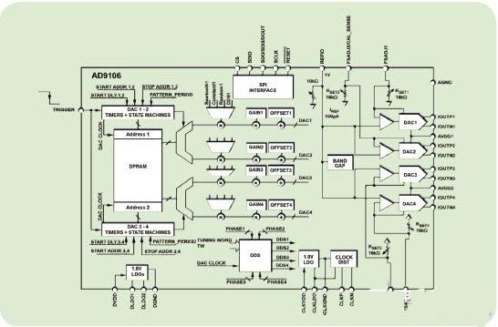 ADI提供適用于醫(yī)療超聲系統(tǒng)的線性發(fā)射解決方案,SNR性能的改進(jìn)在諧波成像(HI)方面具有顯著優(yōu)勢(shì)。線性發(fā)射解決方案使用高速TxDAC。ADI的AD9106是一種高性能12位、180Msps四通道TxDAC,集成片上模式內(nèi)存,用于復(fù)雜波形生成,具有一個(gè)輸出直接數(shù)字頻率合成器(DDS)和SPI接口,用于配置和加載波形數(shù)據(jù)。