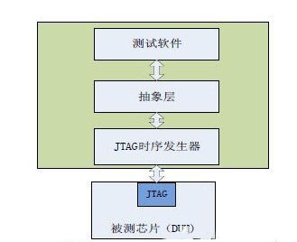 JTAG 在物理層和數(shù)據(jù)鏈路層具有統(tǒng)一的規(guī)范,但針對(duì)不同的芯片仿真測(cè)試協(xié)議可能略有差異。為了使測(cè)試模型具有通用性,我們對(duì)測(cè)試模型的JTAG 接口做了一個(gè)抽象層,如圖3 所示。圖中抽象層將類(lèi)型多樣的控制函數(shù)轉(zhuǎn)化成芯片能識(shí)別的數(shù)據(jù)流來(lái)控制被測(cè)芯片的工作狀態(tài)。