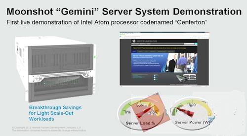 除了使用雙核Atom S1200處理器以外,惠普一直都沒有對Gemini機(jī)器提供多少其他的東東,但這款處理器擁有64位處理能力、支持VT虛擬化技術(shù)以及主內(nèi)存ECC擦除功能,它通過了可運(yùn)行Linux和Windows的服務(wù)器衍生產(chǎn)品的驗證。