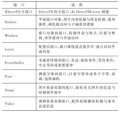 表1 DirectFB的接口描述