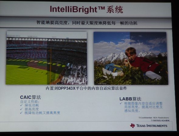 此外,TI還在現(xiàn)有物理條件的狀況下,引進全新圖像處理算法套件IntelliBright,可智能地提升圖像亮度和對比度,同時使功耗最小化。其原理是研究人類視覺的特性,提高人眼所感知的亮度。