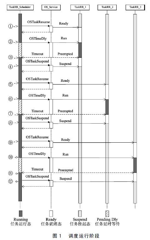 TaskRB_Scheduler的運(yùn)行分為兩個(gè)階段:首先是初始化階段,負(fù)責(zé)所有時(shí)間片任務(wù)的創(chuàng)立并確保其處于Suspend狀態(tài);然后是調(diào)度運(yùn)行階段,如圖1所示。