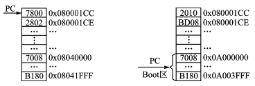 通過研究IAP技術(shù)實(shí)現(xiàn)用戶程序更新的過程,不難發(fā)現(xiàn),在更新過程中必須保證PC指針在Boot區(qū)移動(dòng),而不能隨意跳轉(zhuǎn)至常態(tài)存儲(chǔ)區(qū)?;谶@個(gè)要求,結(jié)合微控制器原理可以得出需要特別注意的幾個(gè)關(guān)鍵點(diǎn)。