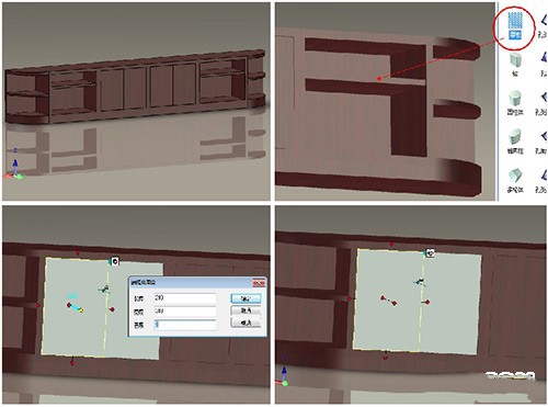 然后,打開CAXA實(shí)體設(shè)計(jì)事先做好的電視柜,柜子已經(jīng)完成大半,現(xiàn)在我將給這個(gè)電視柜配上毛玻璃。在右邊的元素庫(kù)里拉進(jìn)一個(gè)【厚板】元素,選中后進(jìn)入【包圍盒】狀態(tài),編輯尺寸,長(zhǎng)和寬適配柜門尺寸,厚度尺寸可以靈活掌握,這里選擇的3;一個(gè)柜門配置兩塊毛玻璃,用三維球定位。確定后見圖2。