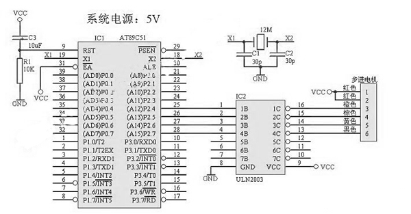 ULN2003的驅(qū)動(dòng)直接用單片機(jī)系統(tǒng)的5V電壓,可能力矩不是很大,大家可自行加大驅(qū)動(dòng)電壓到12V。
