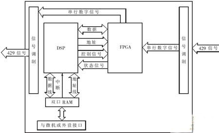 429總線接口板的主要功能是在429信號及相關(guān)外設(shè)之間起到橋梁作用,它既能接收雙極歸零制的429信號并將其轉(zhuǎn)換為數(shù)字信號送入計算機或其它設(shè)備,又可將計算機或其它設(shè)備發(fā)出的數(shù)字信號轉(zhuǎn)換為429信號輸出。本文介紹的總線接口板采用FPGA和DSP實現(xiàn)四路429信號接收通道和四路429信號發(fā)送通道,且每路通道之間相互獨立。在這個接口板中,每兩個數(shù)據(jù)字之間的時間間隔可調(diào),每一個收發(fā)通道能單獨定義字間隔長度,每個通道校驗方式可單獨定義為奇校驗或偶校驗,數(shù)據(jù)發(fā)送可以選擇單幀發(fā)送或自動重復(fù)發(fā)送(重復(fù)發(fā)送某一幀)。