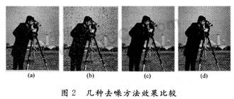 圖2(a)為不含噪聲的原圖像;圖2(b)為噪聲密度5%的污染圖像;圖2(c)為基于最大最小值的波峰波谷濾波方法結(jié)果;圖2(d)為建議的方法得到的結(jié)果。