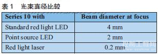 由于帶背景抑制的漫反射式傳感器中使用各種LED,因而,最佳傳感器的選擇需要視具體應(yīng)用而定。在進(jìn)行精密檢測(cè)時(shí),打在物體上的光斑的形狀和大小起著決定性的作用。如果檢測(cè)任務(wù)涉及到高精度物體的定位或者小型元器件的可靠檢測(cè),則可以安裝并采用激光束的傳感器。由于激光二極管的光出口極小,而且光學(xué)元件的質(zhì)量很高,光束焦點(diǎn)的直徑僅為0.2毫米。這樣,物體就能夠以相應(yīng)的精確度進(jìn)行定位。