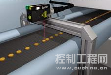 圖2 使用激光傳感器傳送帶上的小型元器件進(jìn)行可靠檢測(cè)。
