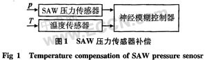 聲表面波(SAW)技術(shù)是一門新興熱門研究課題之一,國(guó)內(nèi)外已有溫度、壓力、加速度等傳感器的相關(guān)報(bào)道。SAW壓力傳感器借助于它無以倫比的性能,諸如:1)數(shù)字號(hào)輸出;2)高靈敏度、高分辨力、抗干擾能力強(qiáng);3)易于大規(guī)模集成。正是由于這些自身的優(yōu)越性,它有著廣泛的應(yīng)用領(lǐng)域。但美中不足的是SAW壓力傳感器對(duì)環(huán)境的要求比較苛刻,SAW振蕩器輸出頻率信號(hào)隨著壓力、溫度、磁場(chǎng)等外界因素變化而變化,特別是溫度的影響是測(cè)量誤差的主要來源,為保證SAW壓力傳感器高準(zhǔn)確度和高靈敏度測(cè)量,必須進(jìn)行有效的溫度補(bǔ)償。本文將神經(jīng)網(wǎng)絡(luò)和模糊控制技術(shù)相結(jié)合,對(duì)SAW壓力傳感器進(jìn)行智能化溫度補(bǔ)償,通過此方法進(jìn)行的改進(jìn),使SAW壓力傳感器能更好地應(yīng)用到工程領(lǐng)域。