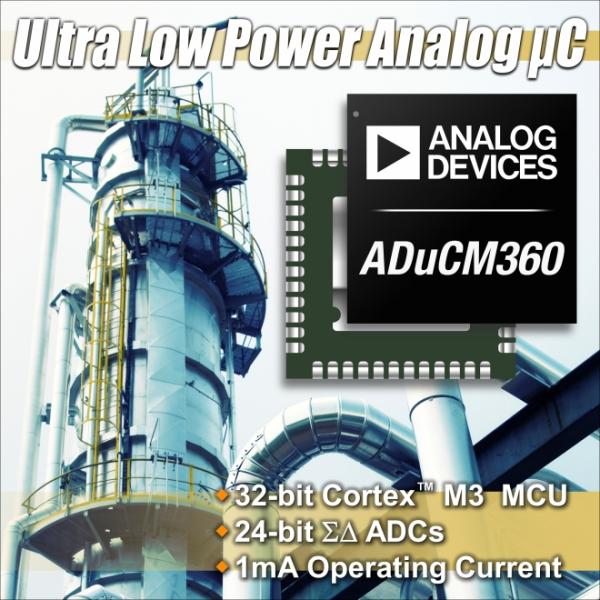 Analog Devices,全球領(lǐng)先的高性能信號(hào)處理解決方案供應(yīng)商和數(shù)據(jù)轉(zhuǎn)換器市場(chǎng)份額領(lǐng)先者,最近推出一款全集成式4 kSPS、24位數(shù)據(jù)采集片上系統(tǒng)ADuCM360,其中整合了雙核、高性能、多通道Σ-Δ型ADC、一個(gè)32位ARM CortexTM M3 MCU,以及Flash/EE存儲(chǔ)器。該器件工作電流為1 mA,用于直接與工業(yè)過程控制中的4至20 mA外部環(huán)路供電型精密傳感器接口。ADuCM360的休眠電流較低,進(jìn)一步提升了其在電池供電應(yīng)用中的效用。