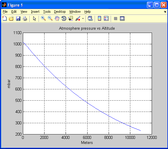 圖1根據(jù)上面的公式描述了大氣壓變化與海拔高度的關系。