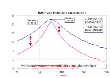 圖3:BGB719N7ESD相較于前幾代的產(chǎn)品(BGB707L7)在FM應(yīng)用上有幾個方面的增強(qiáng),例如高增益等