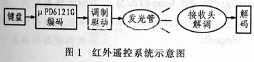 紅外線通訊的發(fā)送部分主要是把待發(fā)送的數(shù)據(jù)轉(zhuǎn)換成一定格式的脈沖,然后驅(qū)動(dòng)紅外發(fā)光管向外發(fā)送數(shù)據(jù)。接收部分則是完成紅外線的接收、放大、解調(diào),還原成同步發(fā)射格式相同(但高、低電位剛好相反的脈沖信號(hào)。這些工作通常由一體化的接收頭來完成,主要輸出TTL兼容電平。最后通過解碼把脈沖信號(hào)轉(zhuǎn)換成數(shù)據(jù),從而實(shí)現(xiàn)數(shù)據(jù)的傳輸。圖1是一個(gè)紅外線遙控制系統(tǒng)的原理框圖。