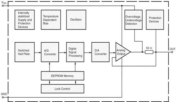 磁場范圍、靈敏度、零點(diǎn)偏移以及溫度系數(shù)的主要參數(shù)等均可在非易失性存儲器里進(jìn)行修訂。